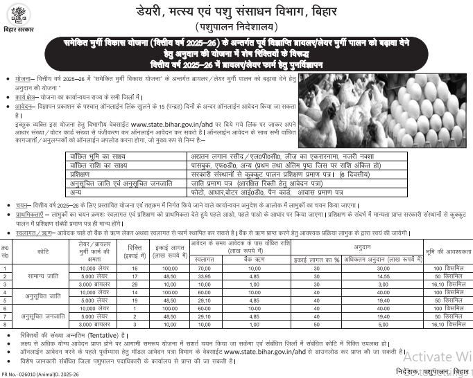 - Bihar Murgi Palan Yojana 2026 का आवेदन फॉर्म खोलें